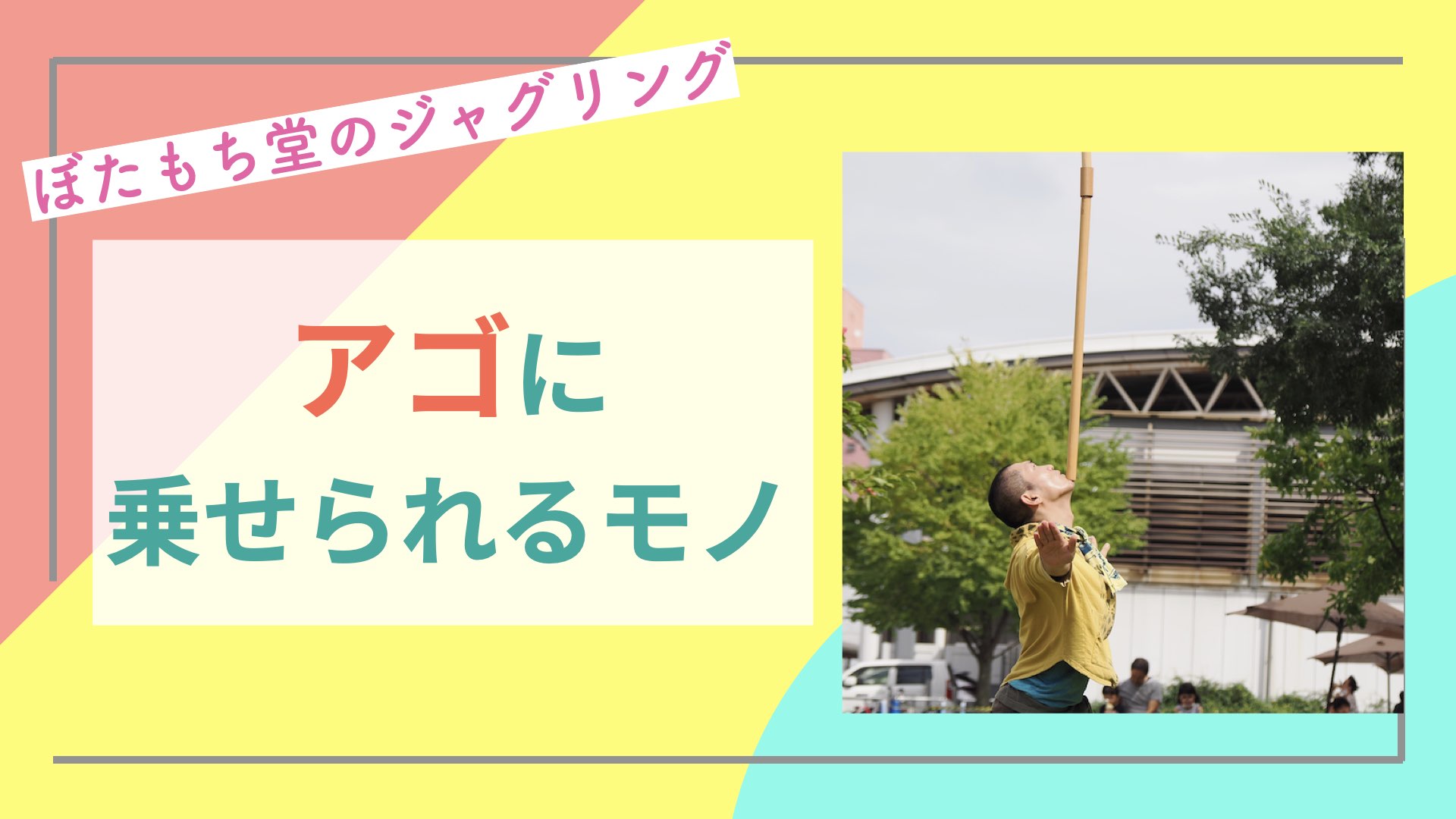 ぼたもち堂のパフォーマンスでは、アゴにモノを乗せるというバランス芸の演目があります。