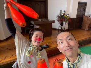 ジャグリングパフォーマンスでは、児童館さんのおもちゃや脚立など、いろいろお借りしてパフォーマンス。